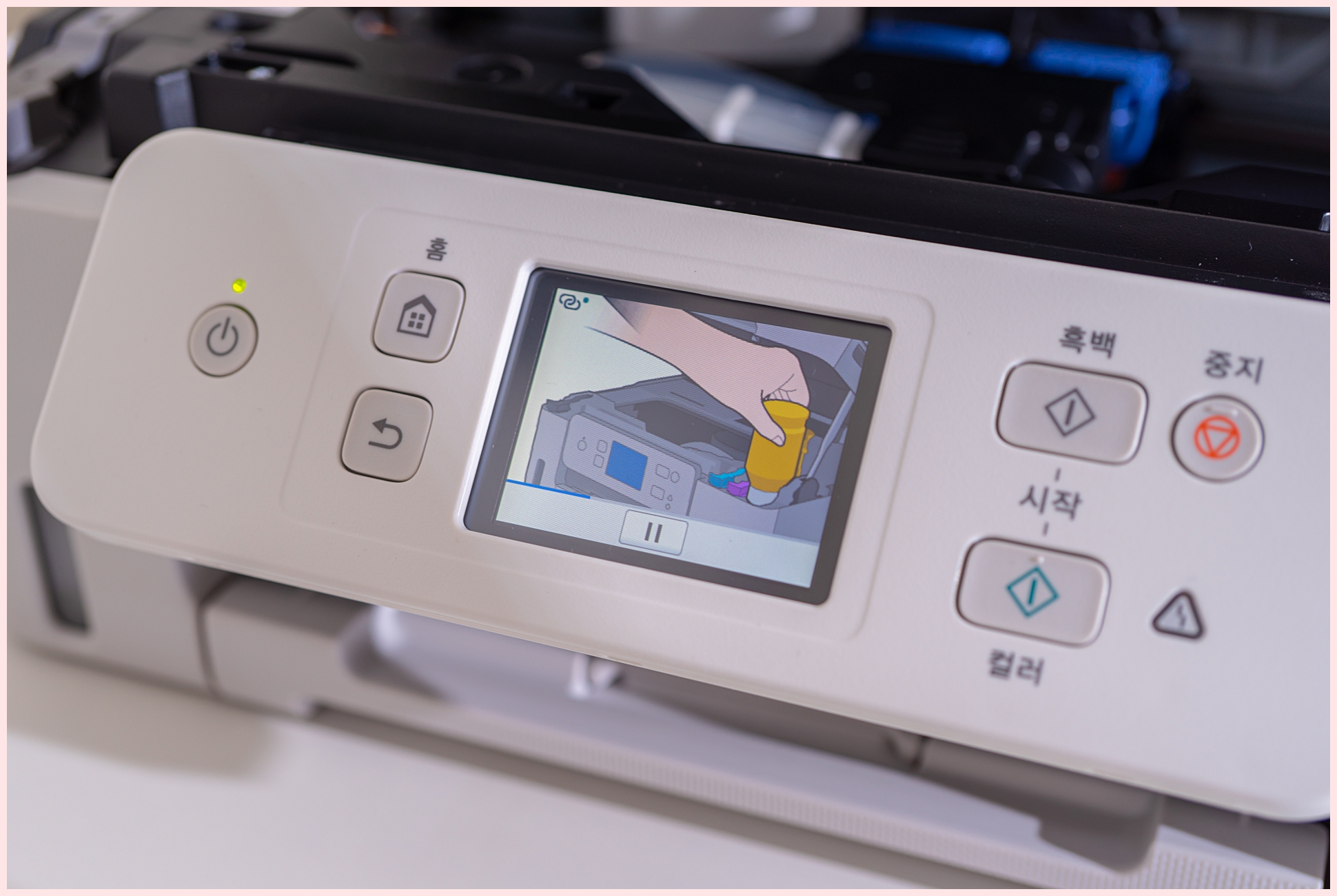 주의할 점은 잉크 주입 시 색상을 혼동하지 않도록 해야 합니다. 오주입 시 잉크 누출의 위험이 있으므로, 반드시 색상 캡을 확인 후 주입해야 합니다.