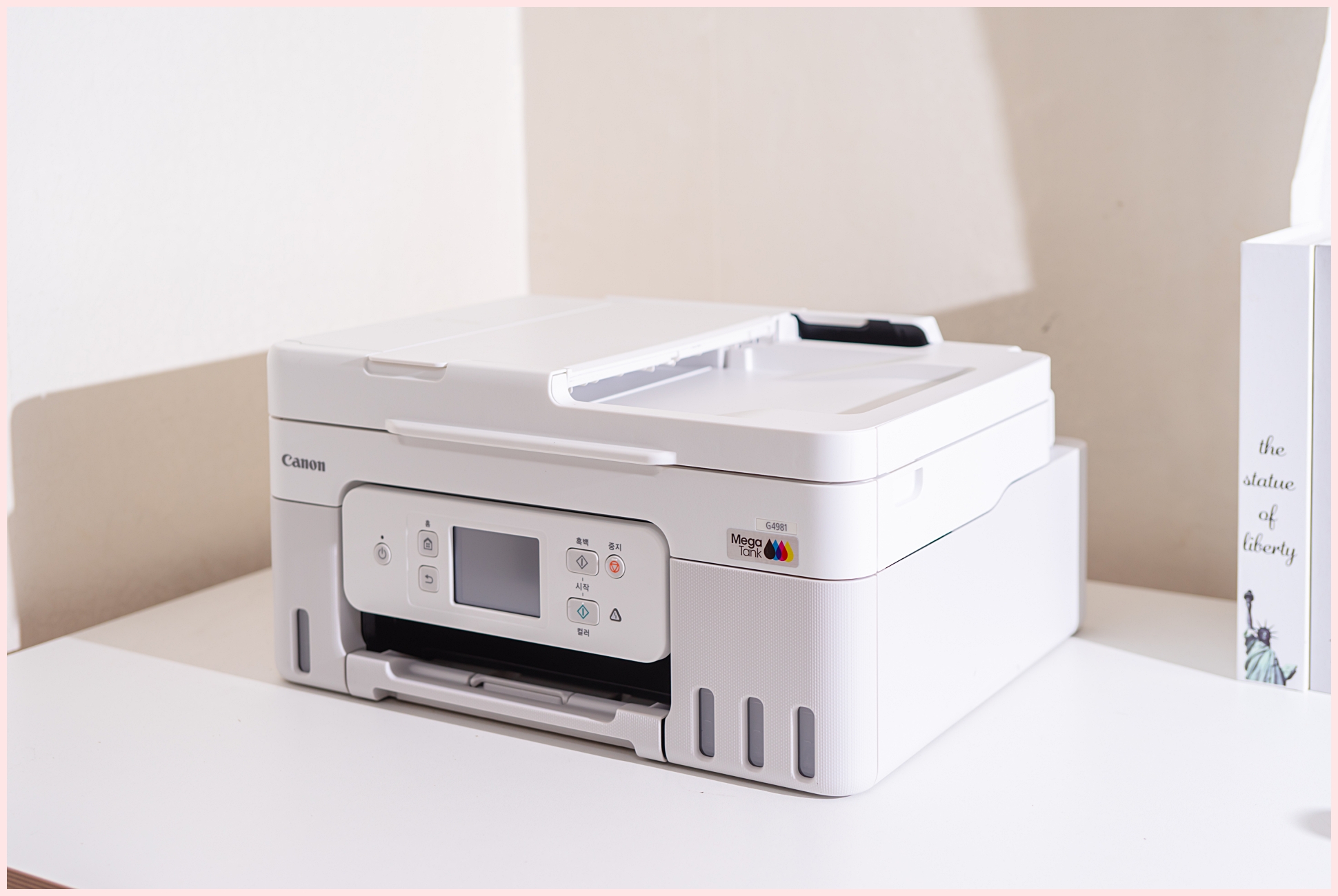 공간 제약으로 인해 가정용 프린터 선택에 고민이 있으신 분들께 캐논 G4981 가정용 프린터를 추천드립니다. 개인적으로 높은 만족도를 경험하고 있다 보니 까다로운 분들에게도 좋은 선택지지 않나 싶습니다.